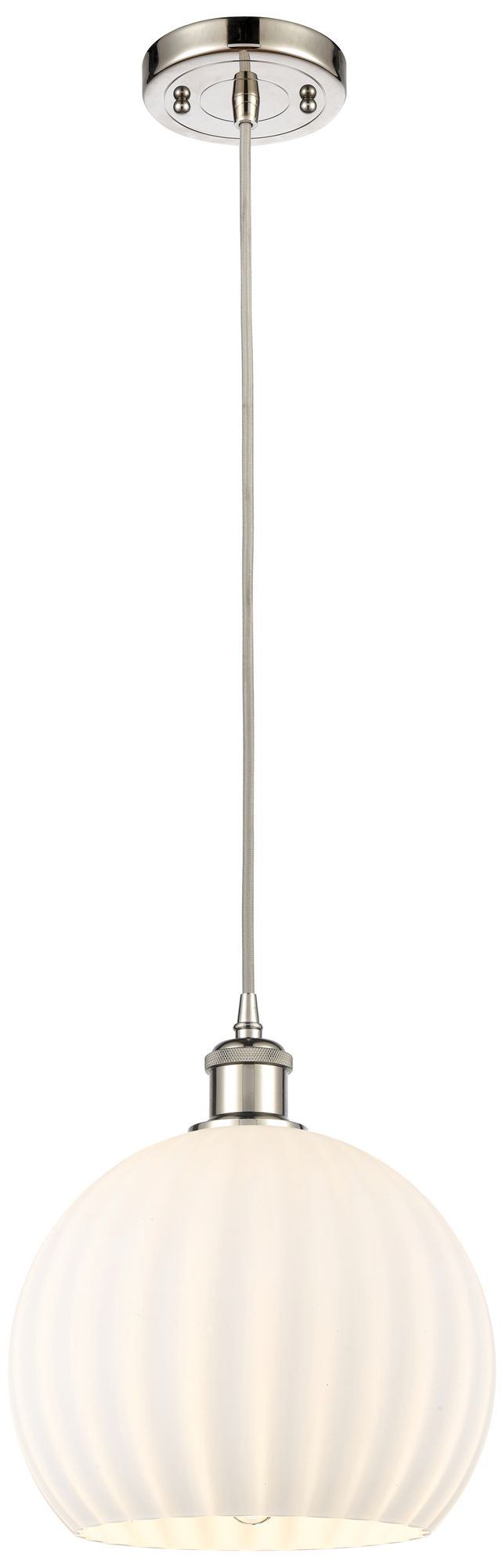 Ballston 10"W Polished Nickel Corded Mini Pendant w/ White Venetian Sh