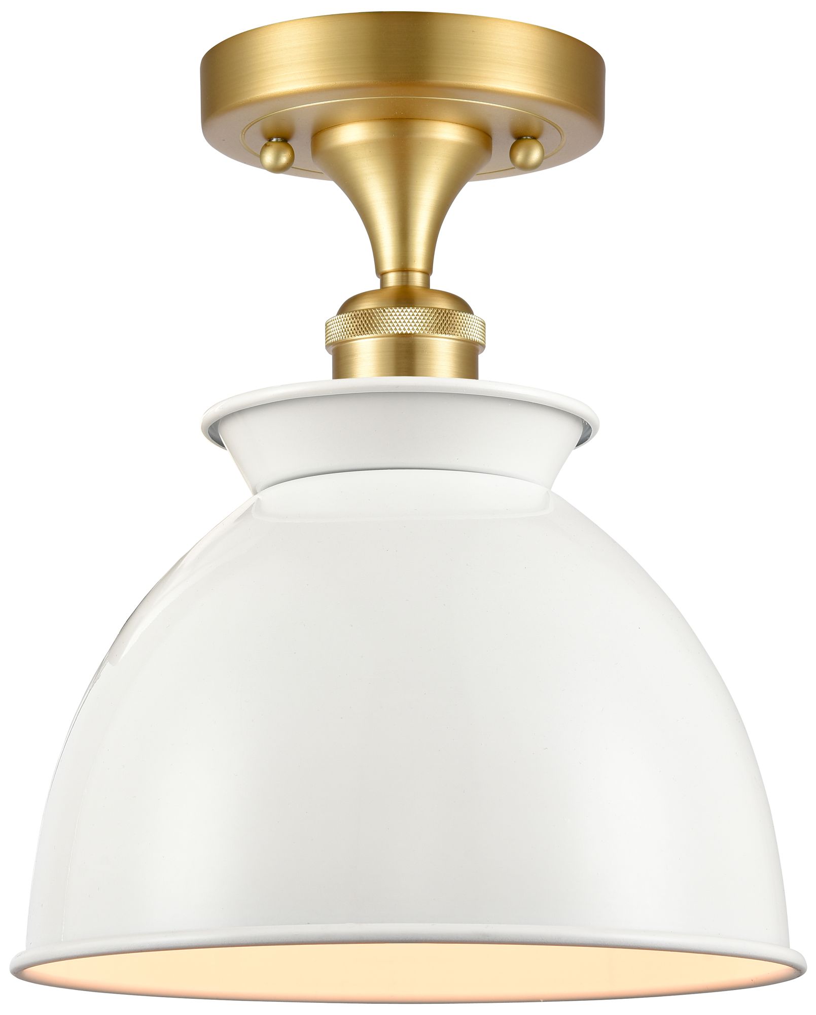 Adirondack 8.5" Wide Satin Gold Semi Flush Mount w/ Glossy White Shade