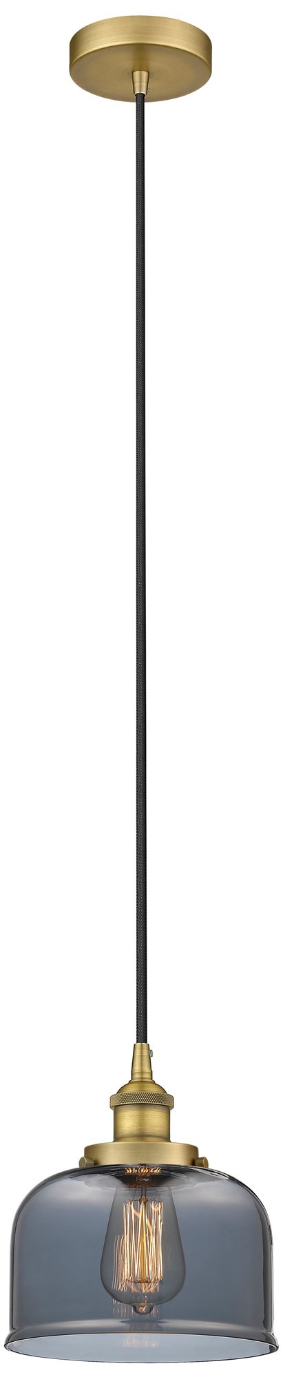 Bell 8" Brushed Brass Mini Pendant w/ Plated Smoke Shade