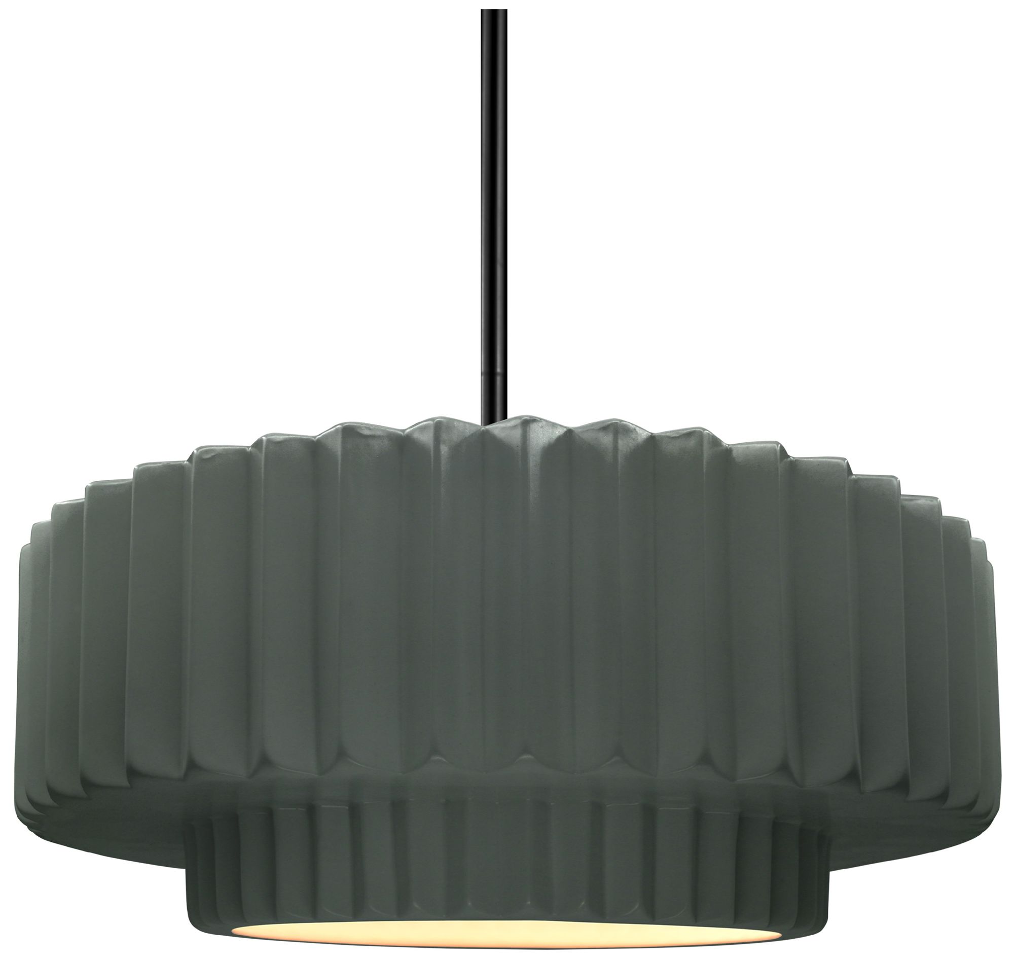 14.5"W Pewter Green Frame Matte Black Tier Pleated Rigid Stem Kit Pend