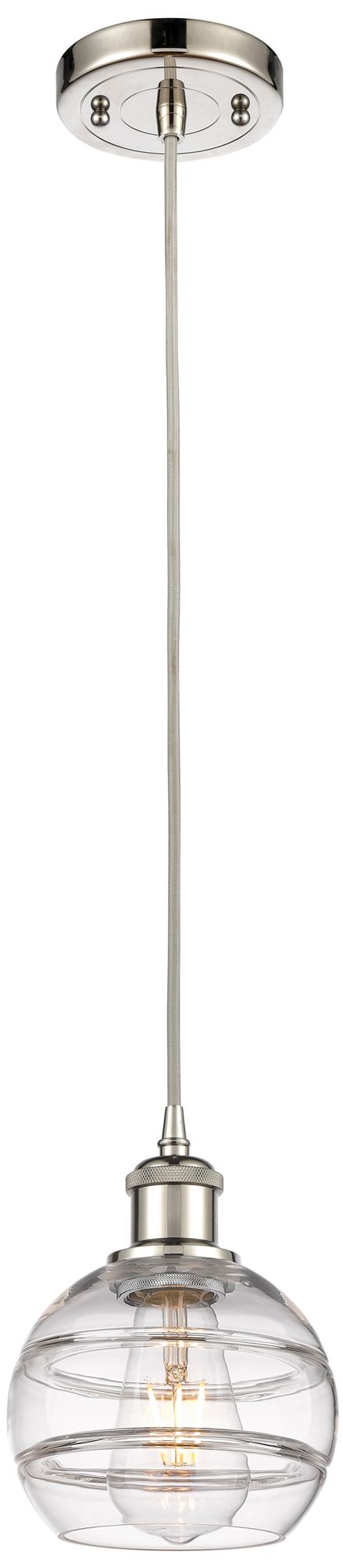 Ballston Rochester 5.88"W Polished Nickel Cord Mini Pendant w/ Clear S