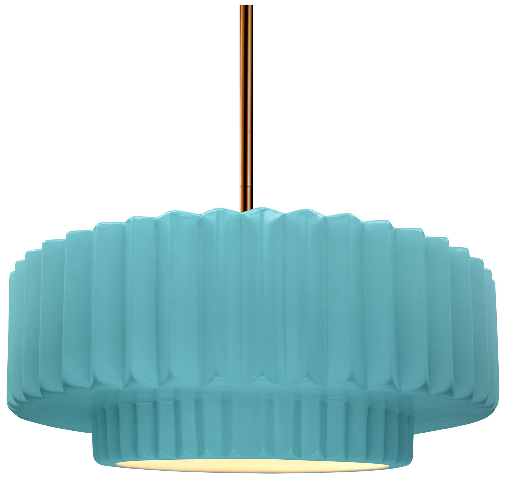 14.5"W Reflecting Pool Frame Polished Brass Tier Pleated Stem Pendant