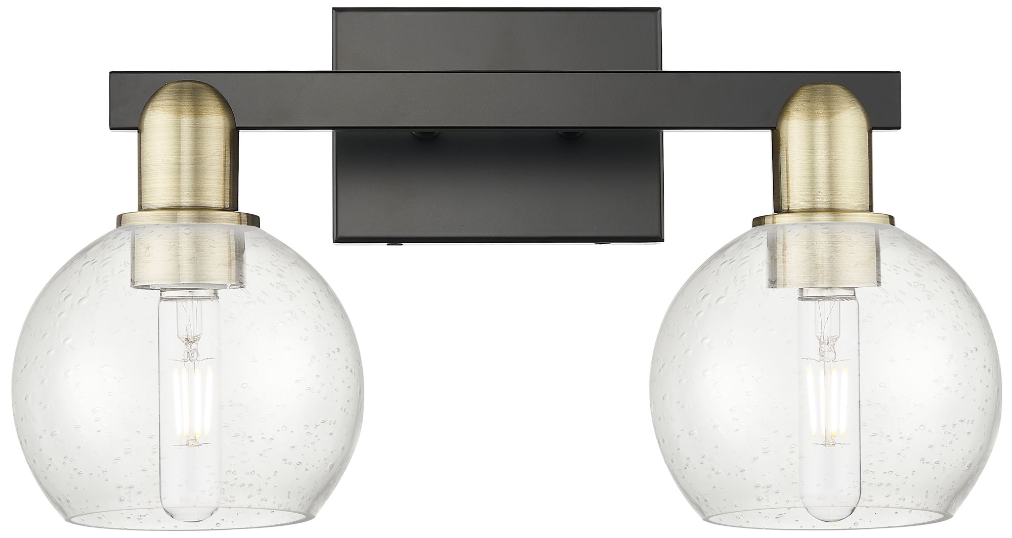 Arcadia Athens 17"W 2 Light Black And Brass Bath Light w/ Seedy Shade