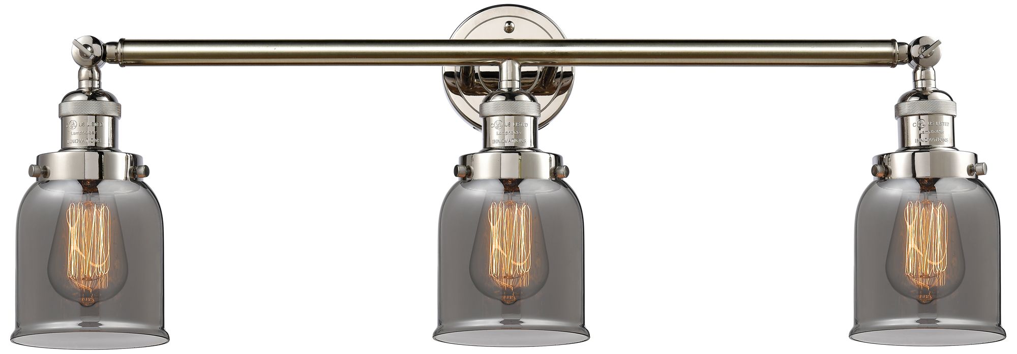 Bell 30" 3-Light Polished Nickel Bath Light w/ Plated Smoke Shade