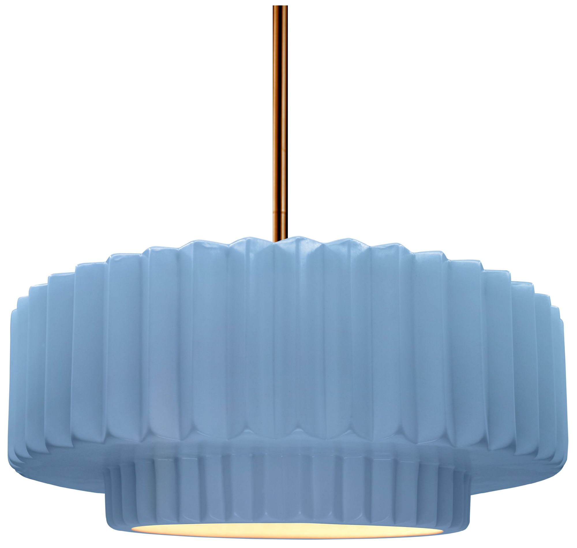 14.5"W Sky Blue Frame Polished Brass Tier Pleated Rigid Stem Kit Penda