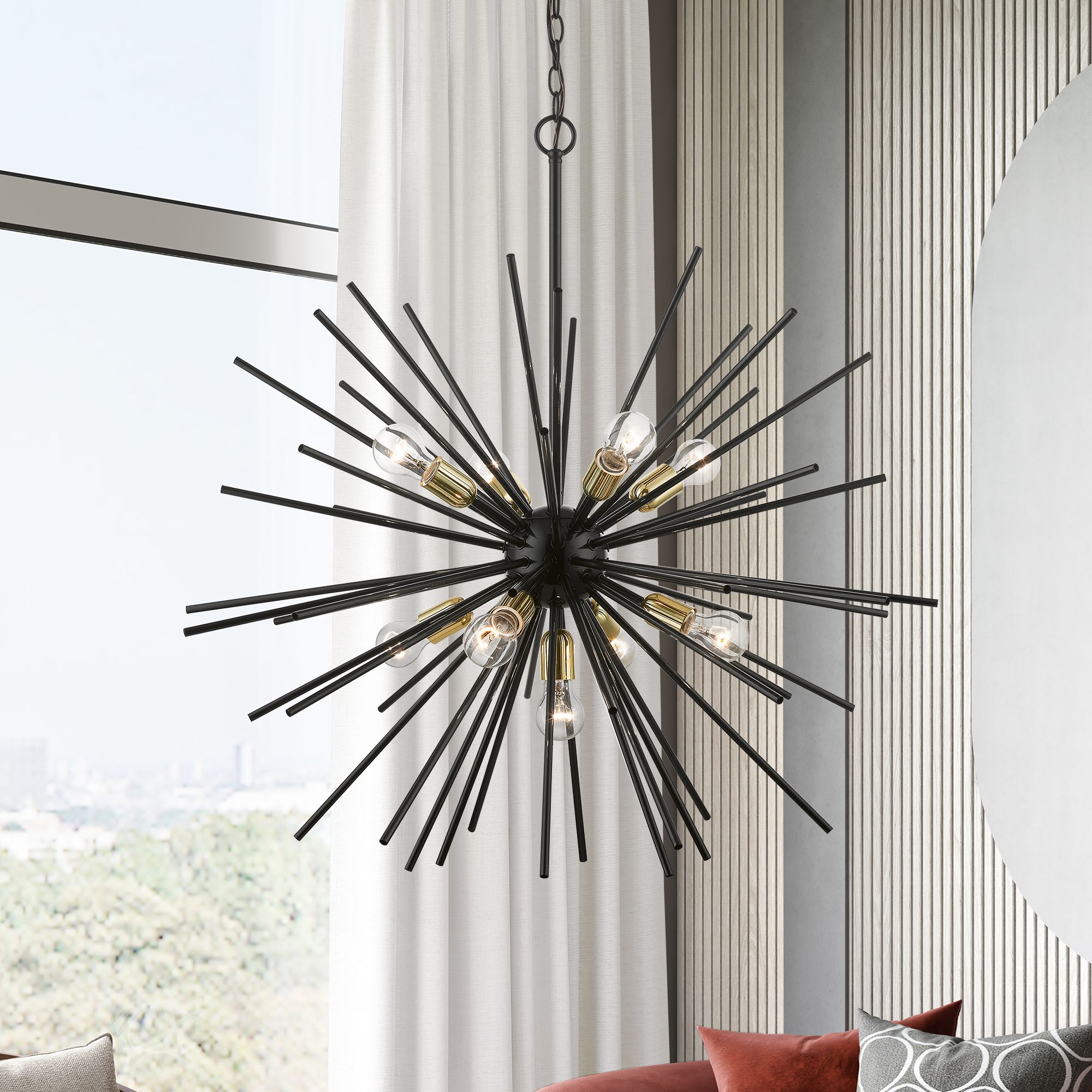 Tribeca 34" Wide Shiny Black and Brass 9-Light Foyer Pendant