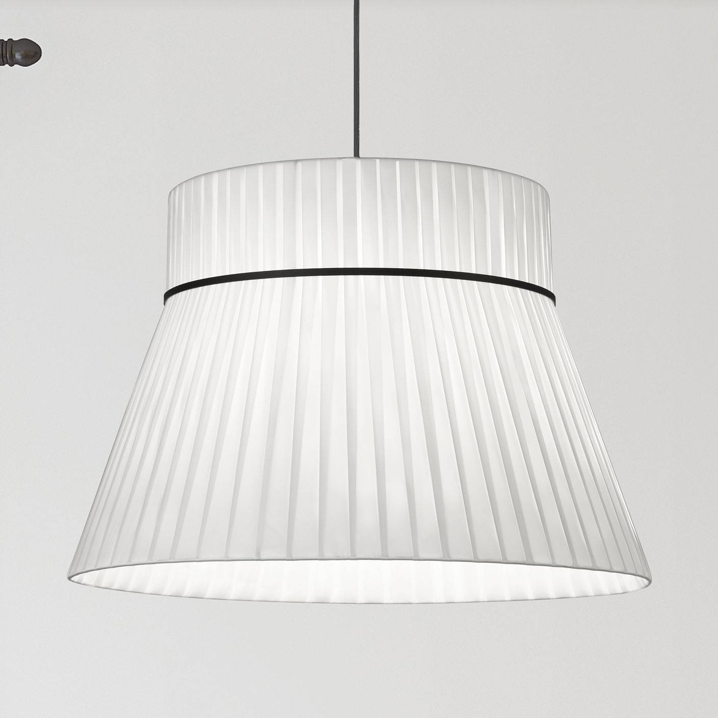 Rochelle 24" Wide Matte Black Pendant With White Ribbon Shade