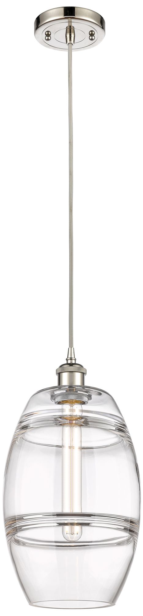 Ballston Vaz 8" Wide Polished Nickel Cord Hung Mini Pendant w/ Clear S