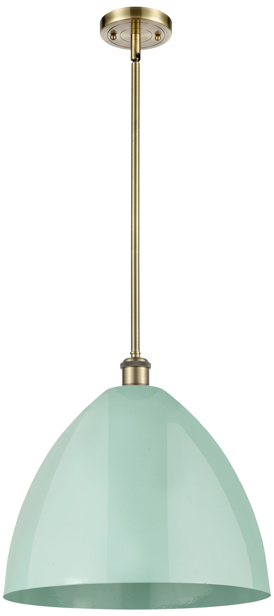 Plymouth Dome 16" Wide Antique Brass Stem Hung Pendant w/ Seafoam Shad