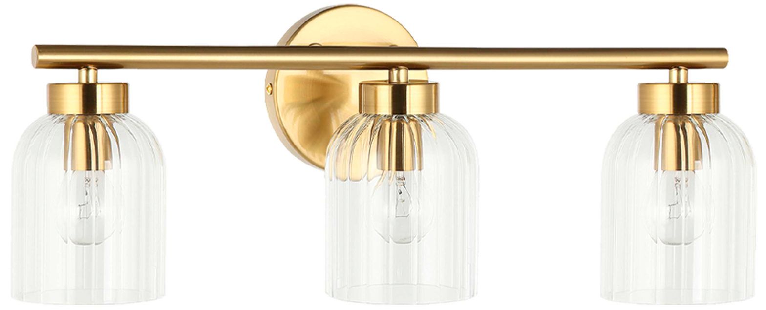 Vienna 21" Wide 3 Light Aged Brass Vanity With Clear Ribbed Glass Shad