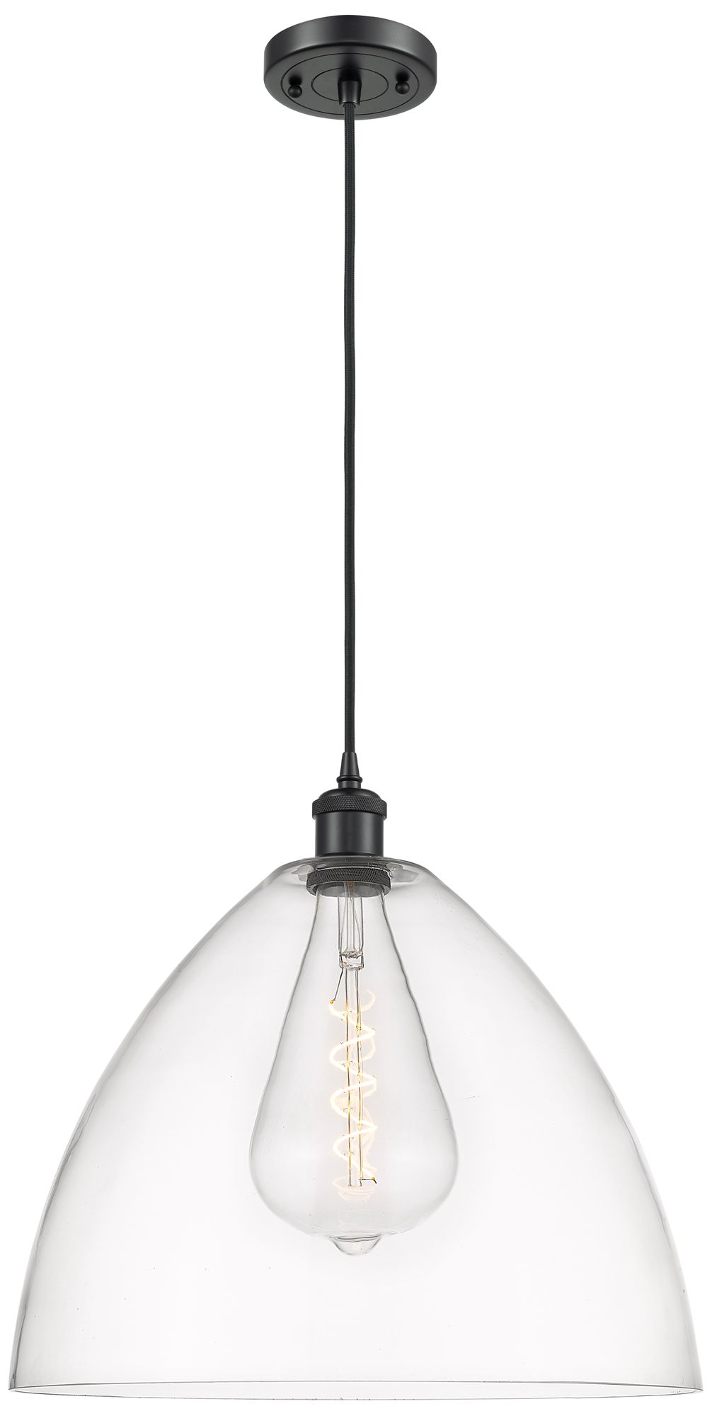 Ballston Bristol Glass 16" Matte Black Pendant With Clear Shade
