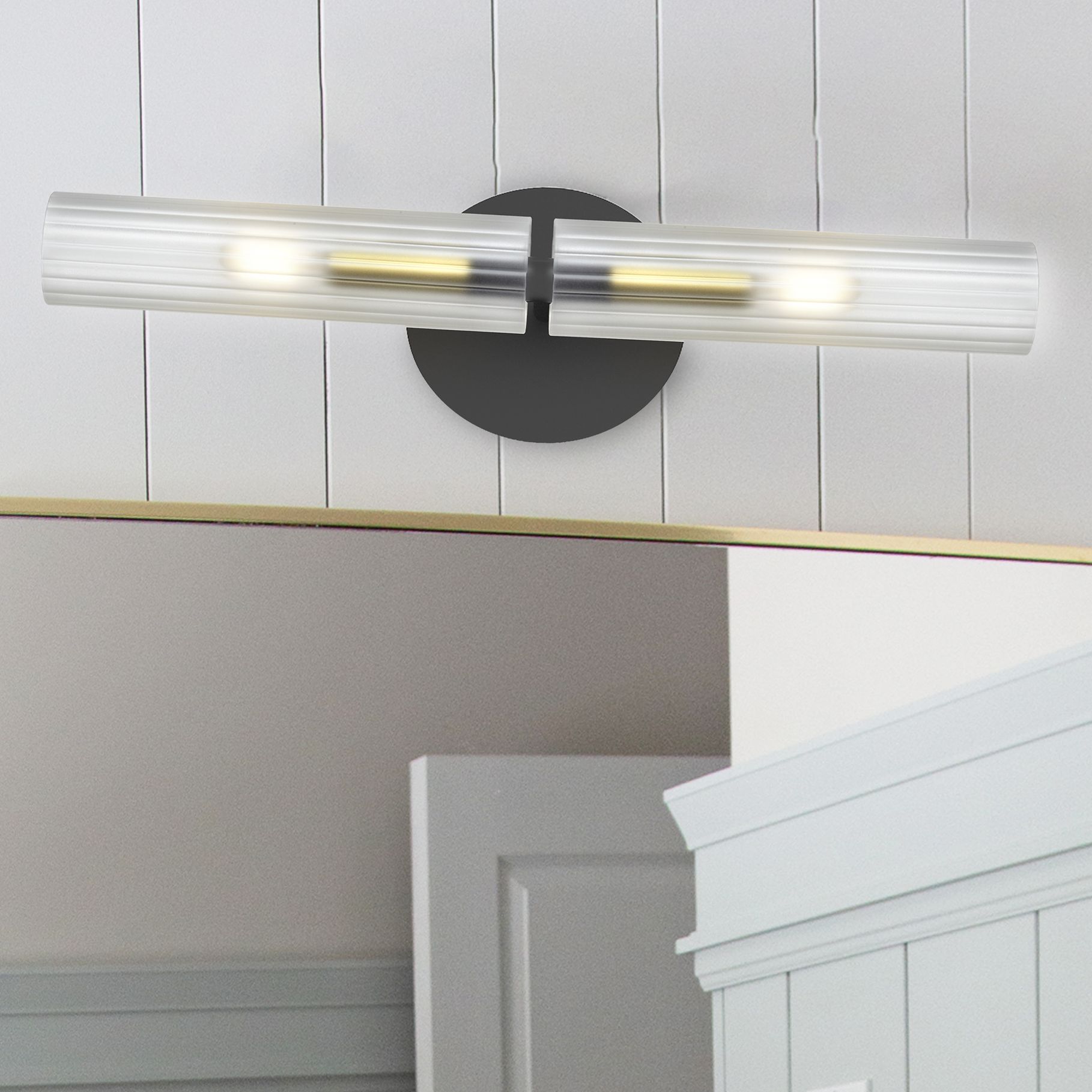 Wand 20.5"H 2 Light Matte Black And Aged Brass Wall Sconce w/ Frosted