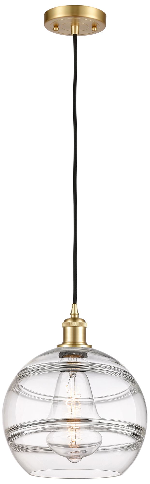 Ballston Rochester 10" Wide Satin Gold Corded Mini Pendant w/ Clear Sh