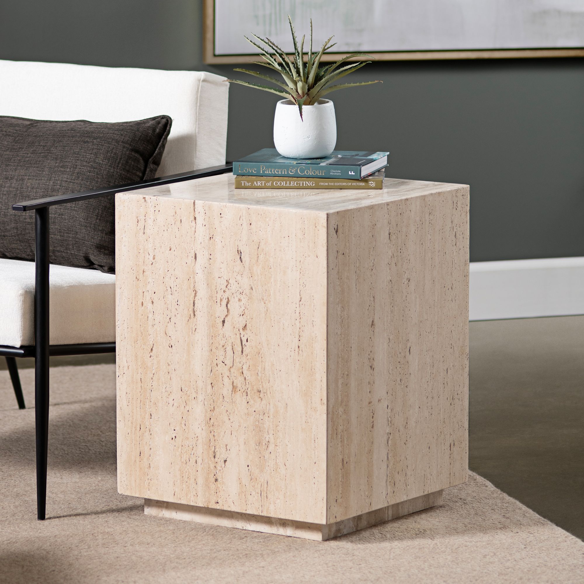 Palermo 18" Wide Cream Travertine Square End Table