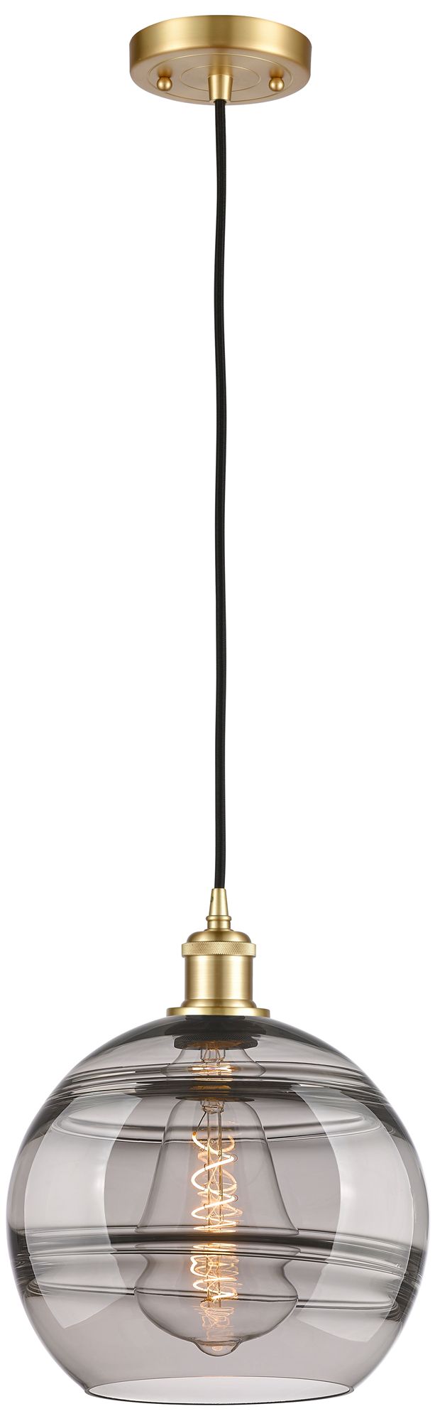 Ballston Rochester 10"W Satin Gold Corded Mini Pendant w/ Light Smoke