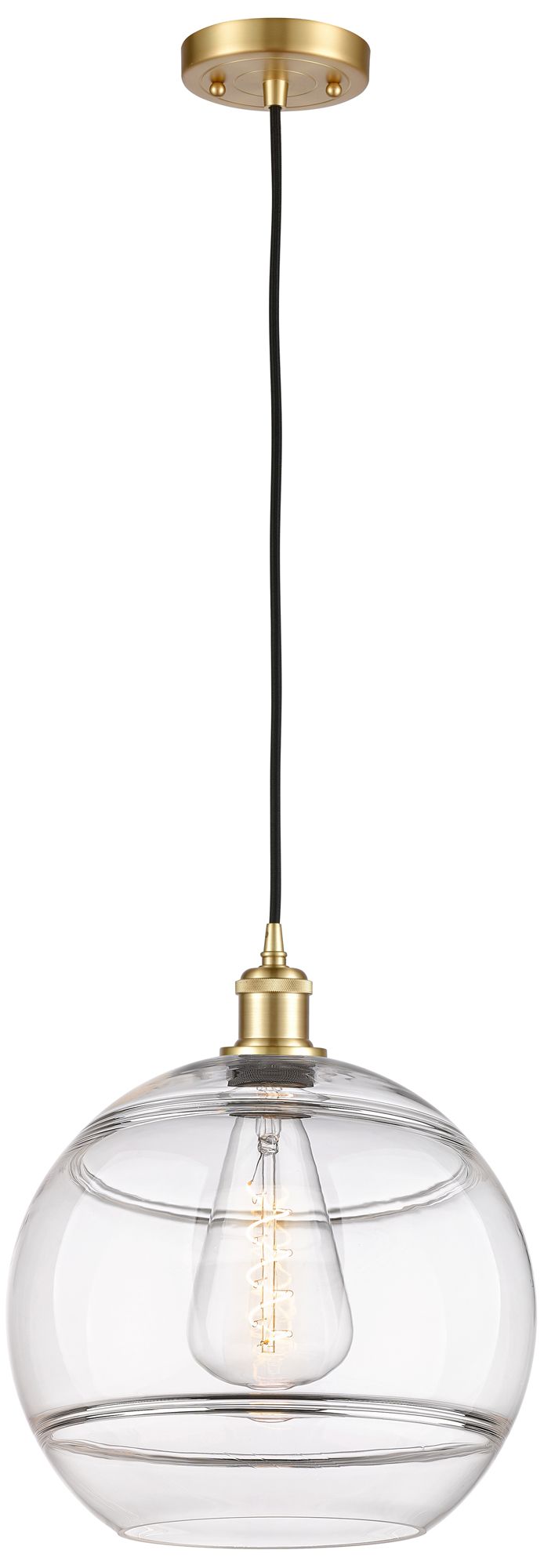 Ballston Rochester 12" Wide Satin Gold Corded Mini Pendant w/ Clear Sh