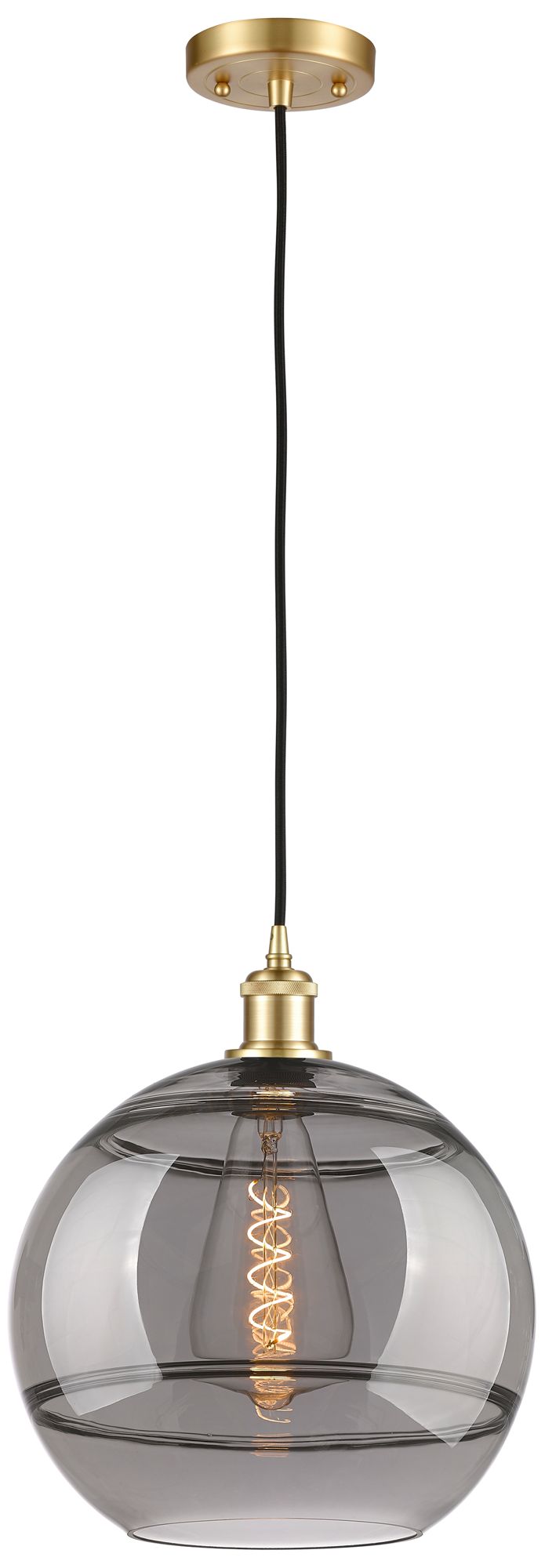 Ballston Rochester 12"W Satin Gold Corded Mini Pendant w/ Light Smoke