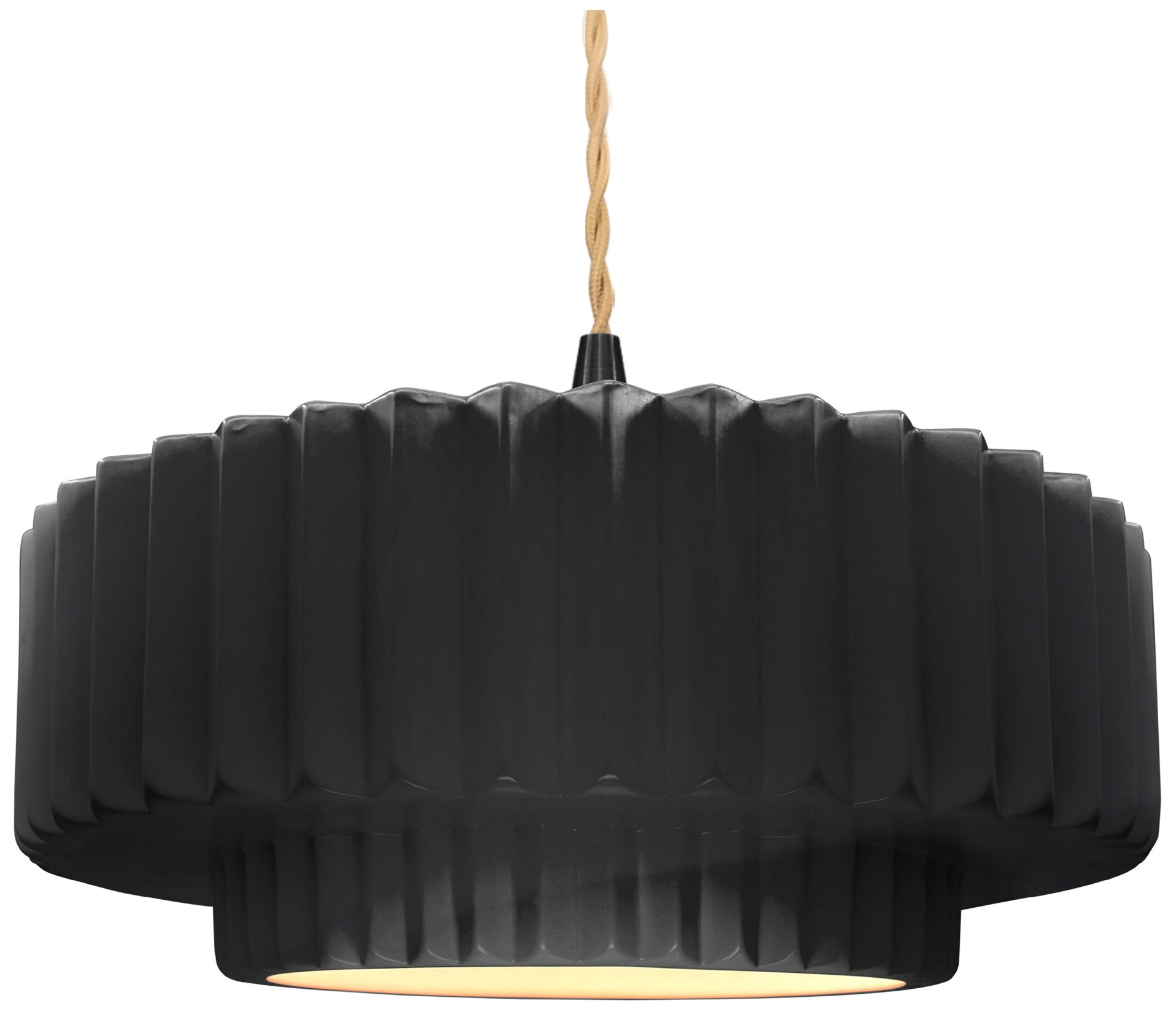 16.25"W Black/White Frame Matte Black Large Tier Pleated Twisted Penda