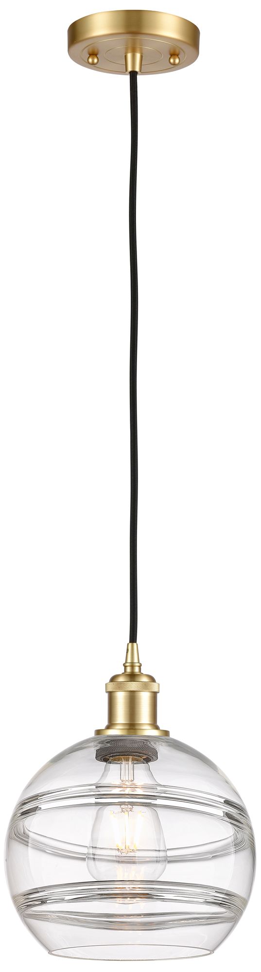 Ballston Rochester 8" Wide Satin Gold Cord Hung Mini Pendant w/ Clear