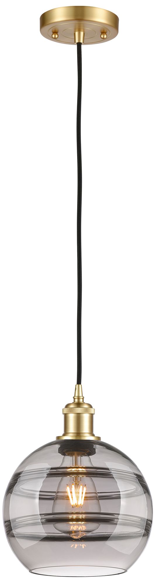 Ballston Rochester 8"W Satin Gold Corded Mini Pendant w/ Light Smoke S