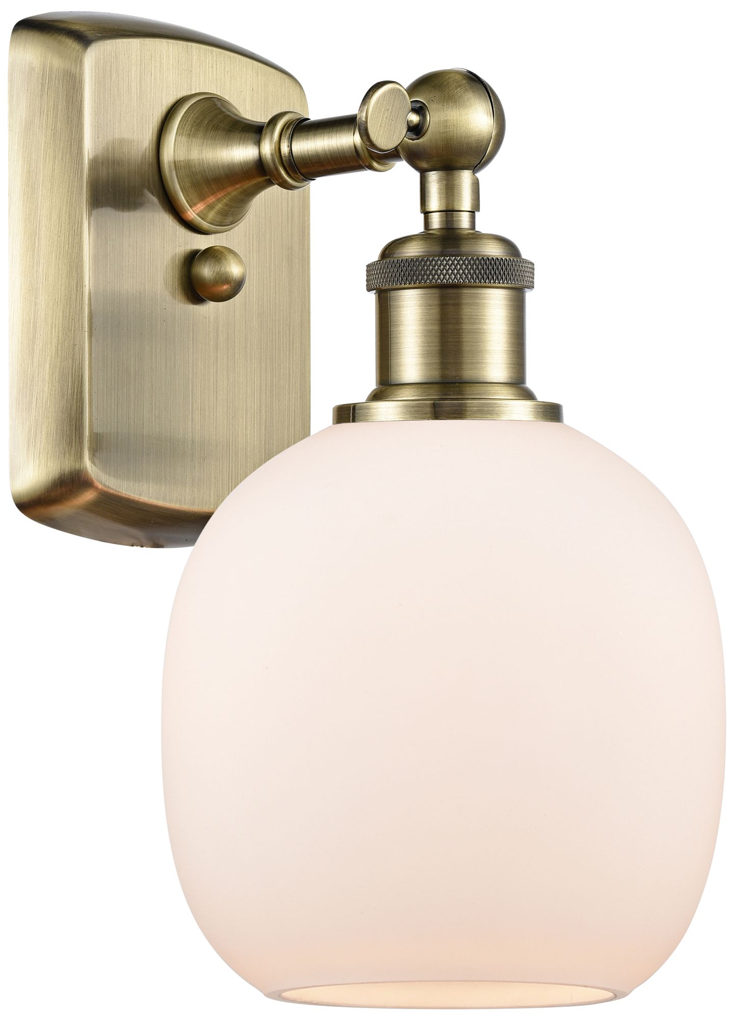 Belfast 11" High Antique Brass Sconce w/ Matte White Shade