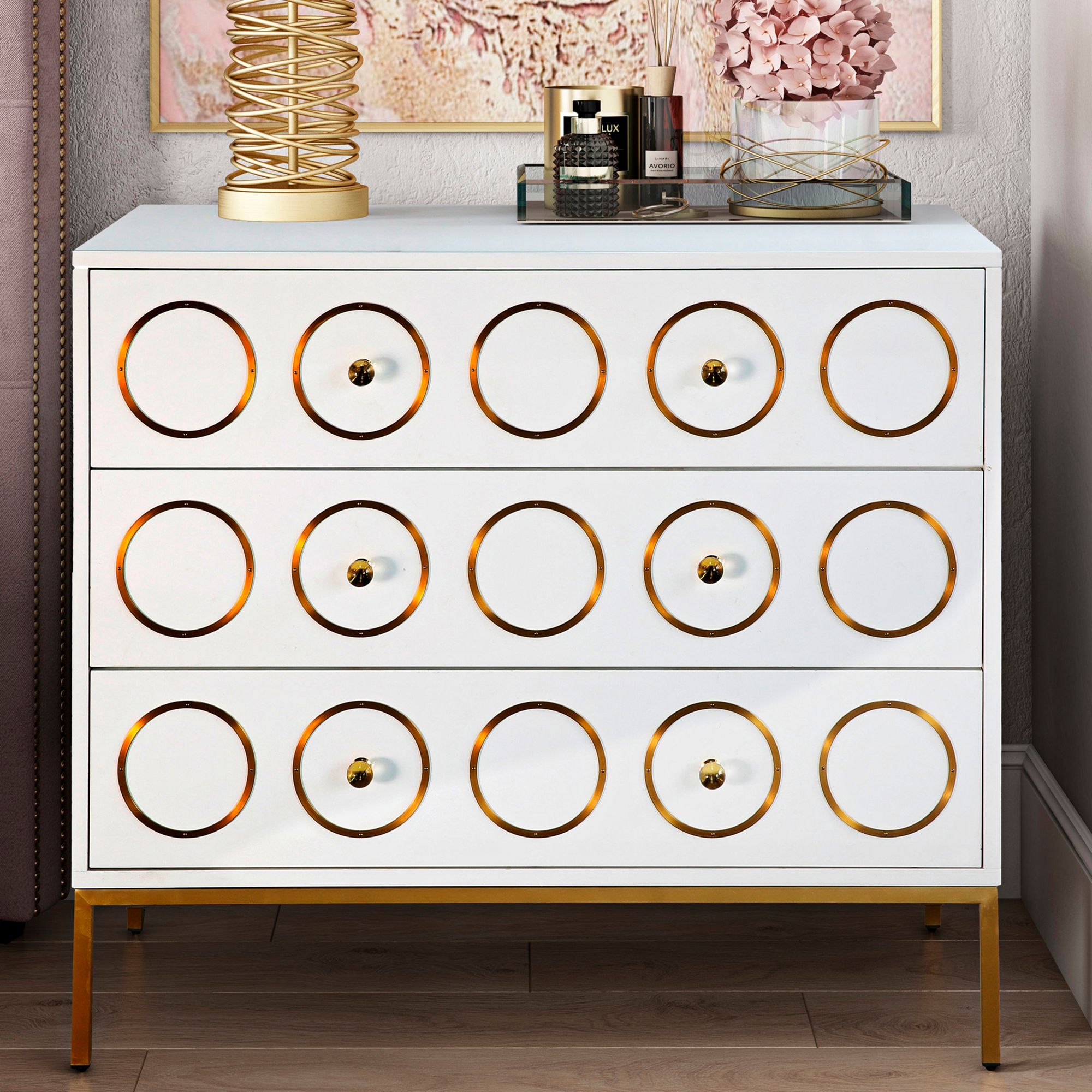 Ella 40" Wide White Lacquer 3-Drawer Luxe Modern Chest