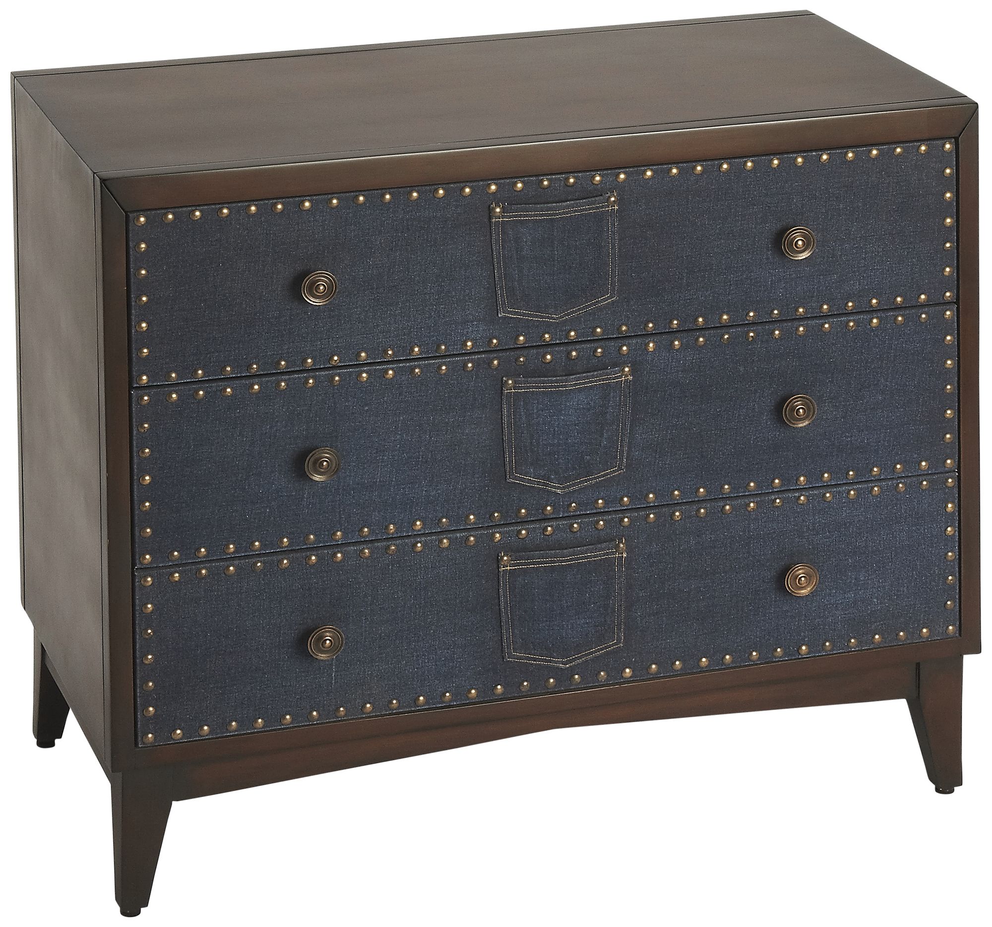 Lindor 34" Wide 3-Drawer Indigo Blue Denim Console Chest