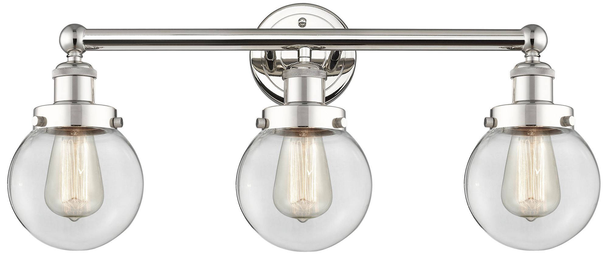Small Edison Beacon 24.5"W 3 Light Nickel Bath Light w/ Clear Shade