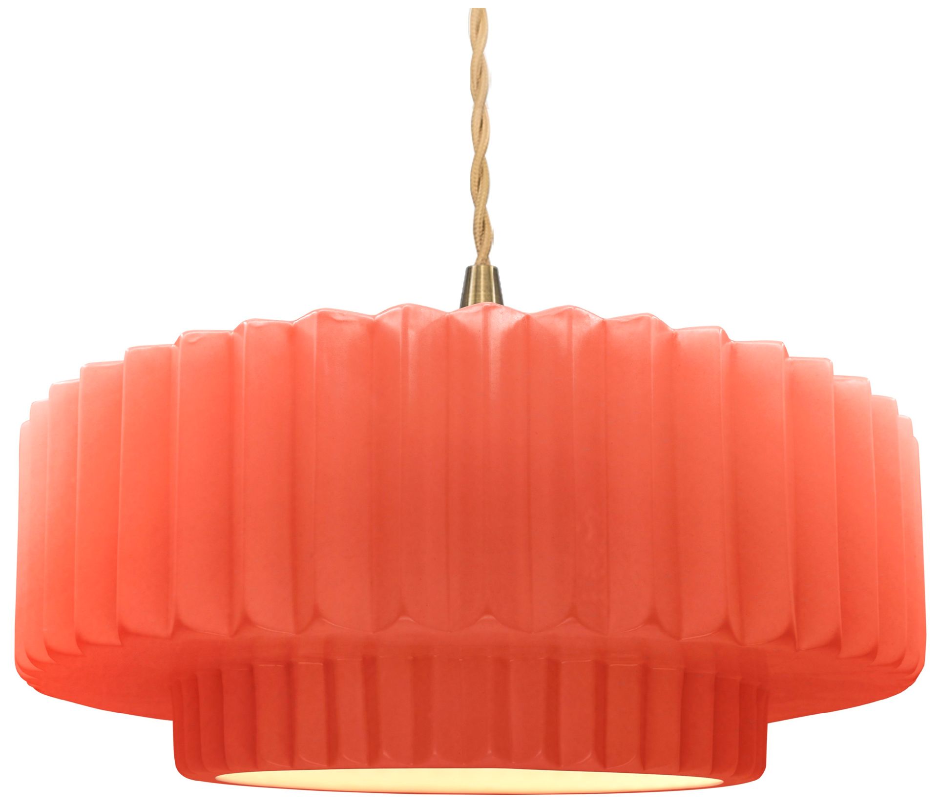 16.25"W Gloss Blush Frame Brushed Brass Large Tier Pleated Twisted Pen