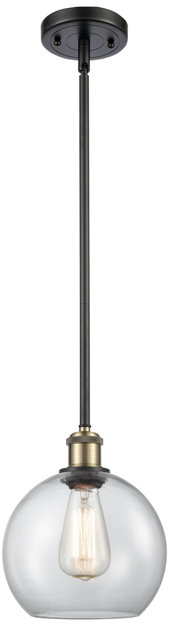 Ballston Athens 8"W Stem Hung Black Brass Mini Pendant w/ Clear Shade