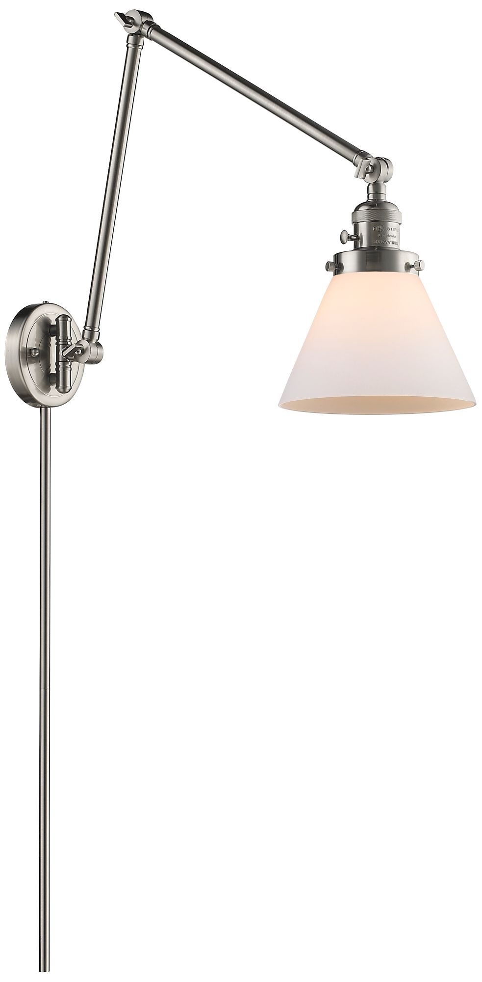 Cone 8" Brushed Satin Nickel Swing Arm w/ Matte White Shade