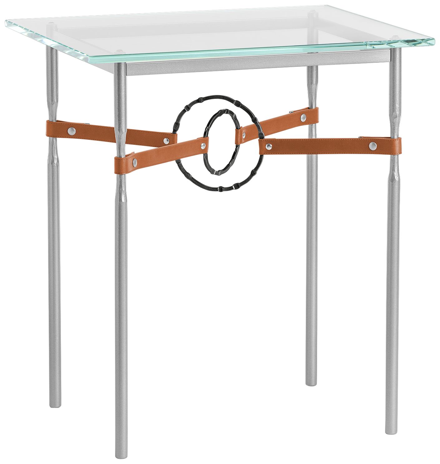 Equus 22"W Platinum Side Table w/ Black Ring Chestnut Strap