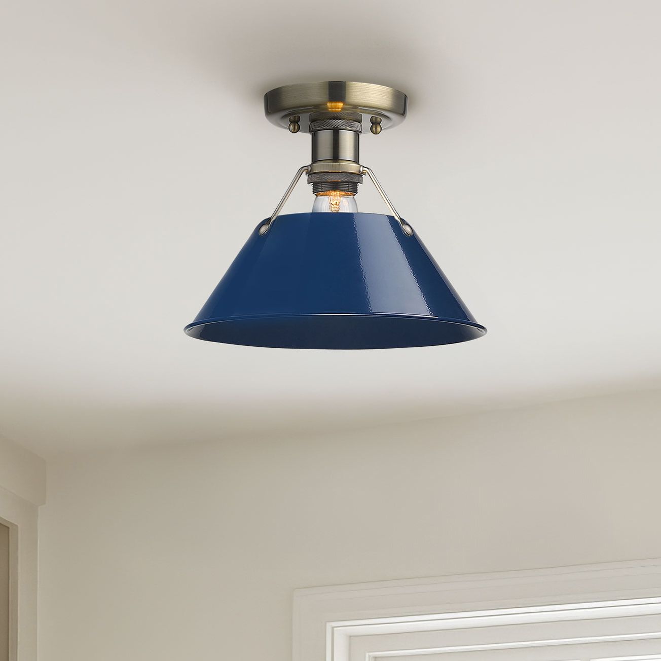 Orwell 10" Wide Aged Brass 1-Light Flush Mount With Navy Blue Shade