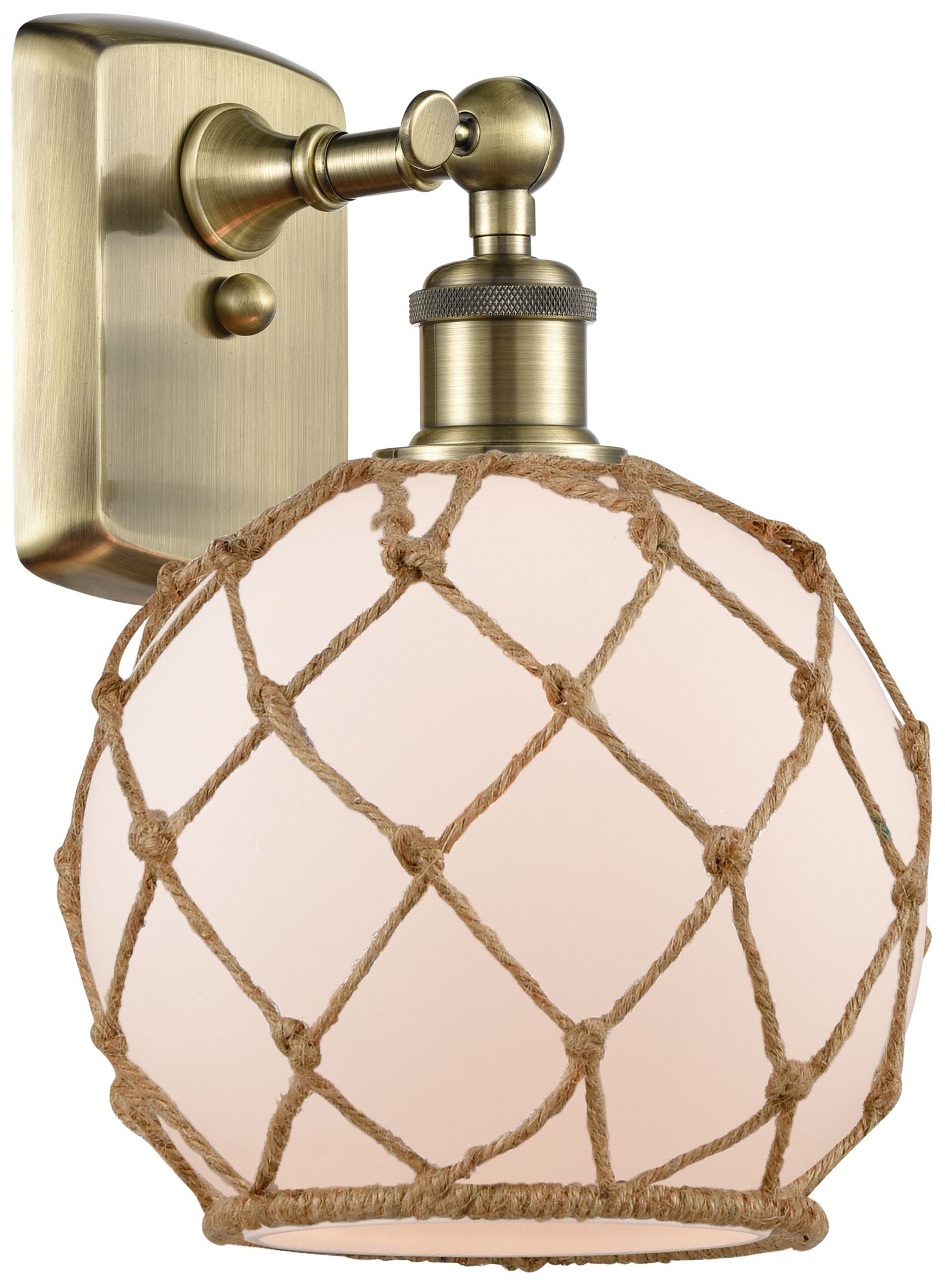 Farmhouse Rope 13"H Antique Brass Sconce w/ White and Brown Rope Shade