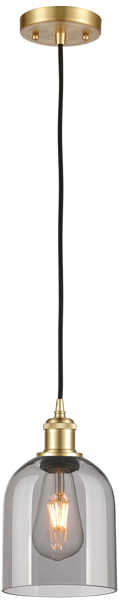 Ballston Bella 5.5"W Satin Gold Corded Mini Pendant w/ Light Smoke Sha