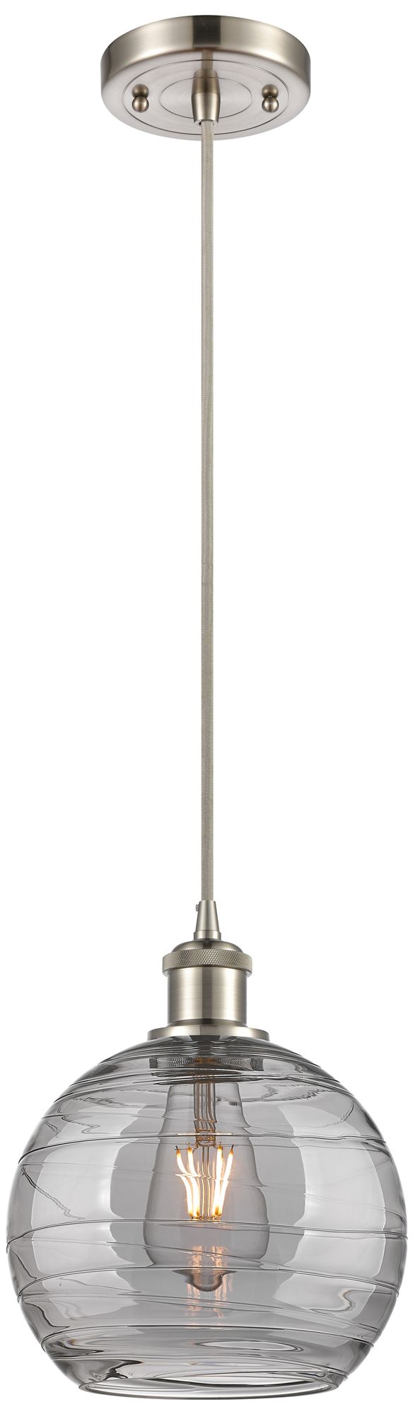 Ballston Athens 8"W Satin Nickel Corded Mini Pendant w/ Smoke Swirl Sh