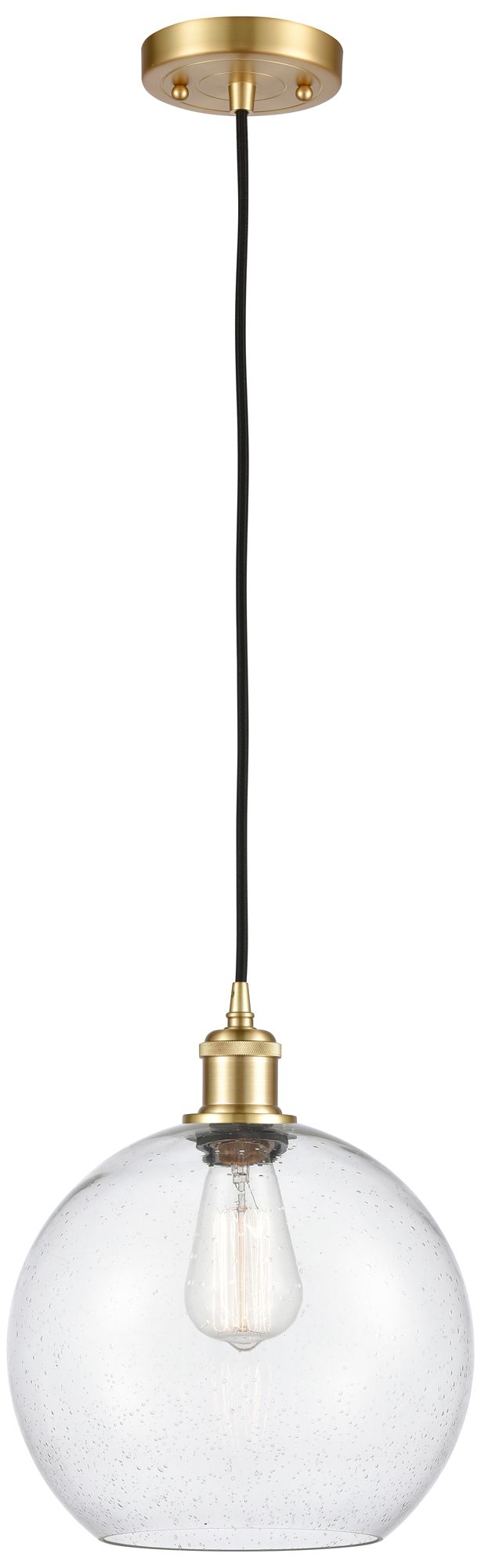 Ballston Athens 10" Satin Gold Cord Hung Mini Pendant w/ Seedy Shade