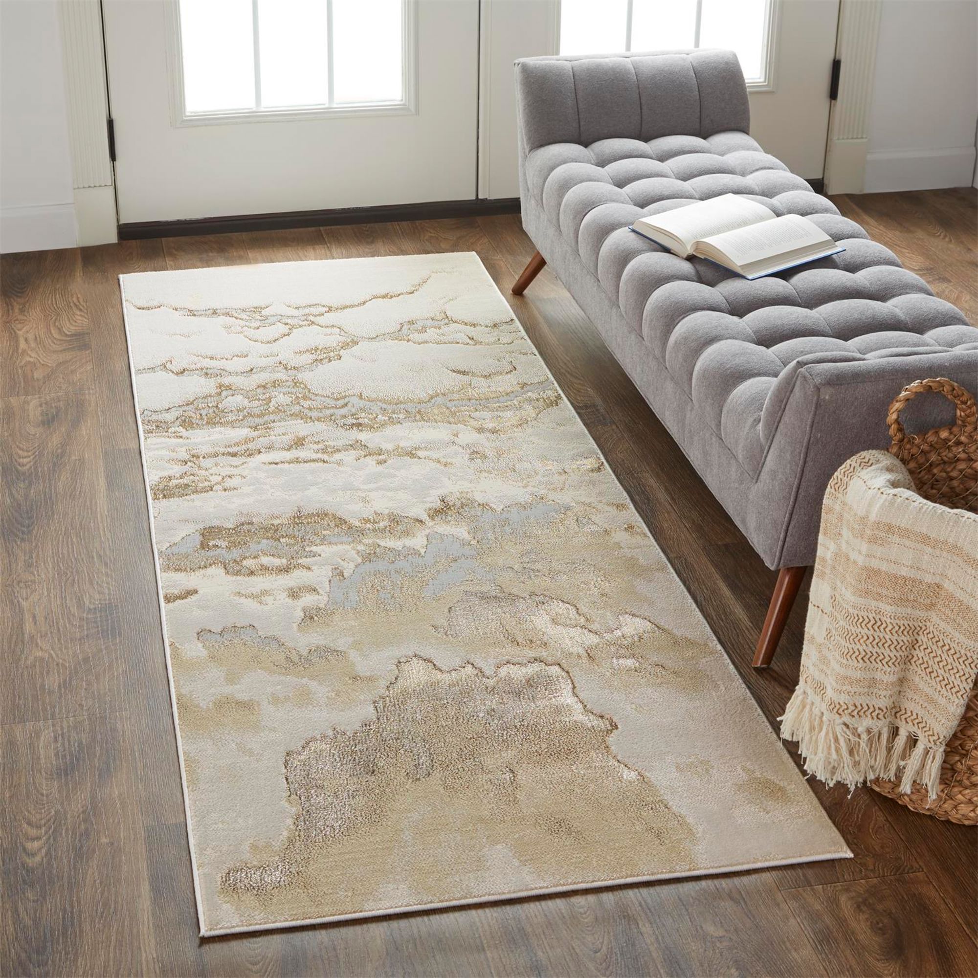 Aura 3727F 2'10"x7'10" Cloudy Beige and Rich Gold Runner