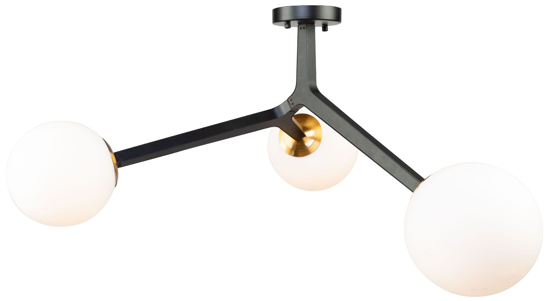 Ravello 38" Wide 3-Light Black Semi-Flush Mount With White Glass Shade