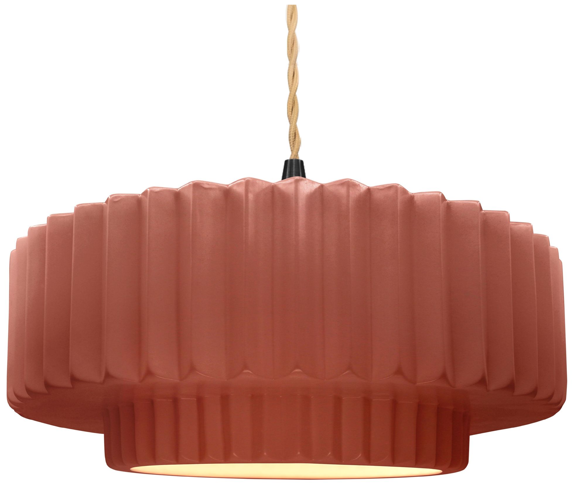 16.25"W Clay Frame Matte Black Large Tier Pleated Beige Twisted Pendan