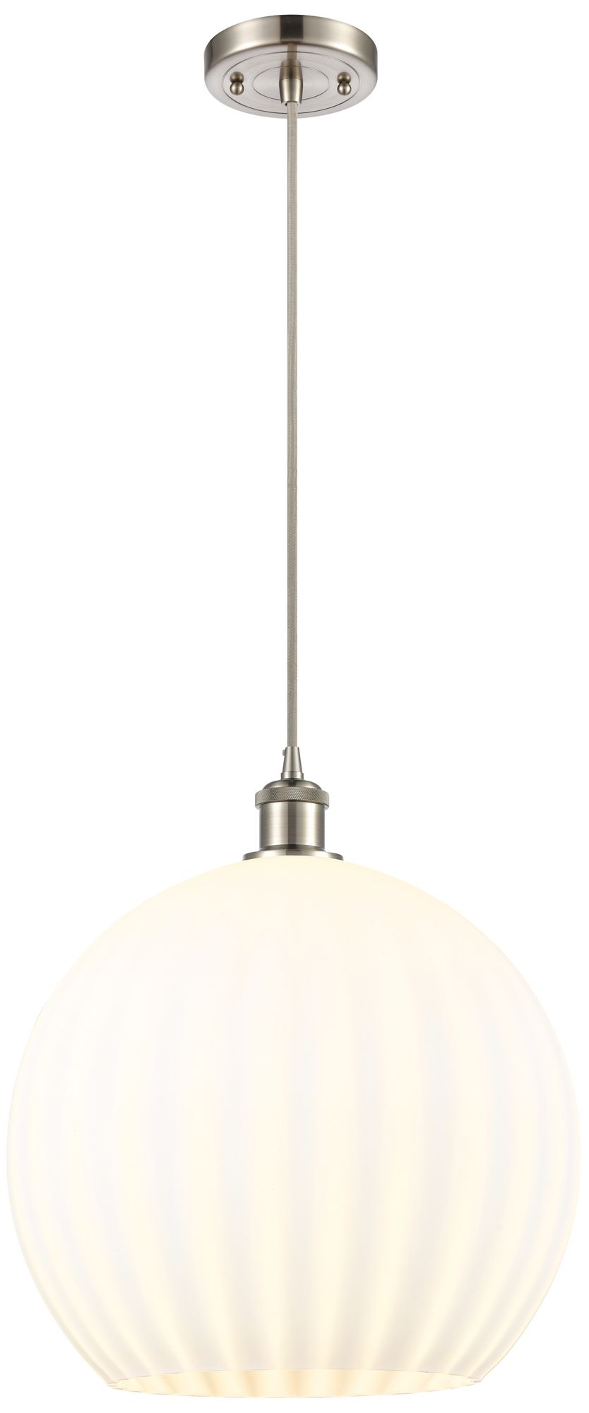 Ballston 13.75"W Satin Nickel Corded Pendant w/ White Venetian Shade