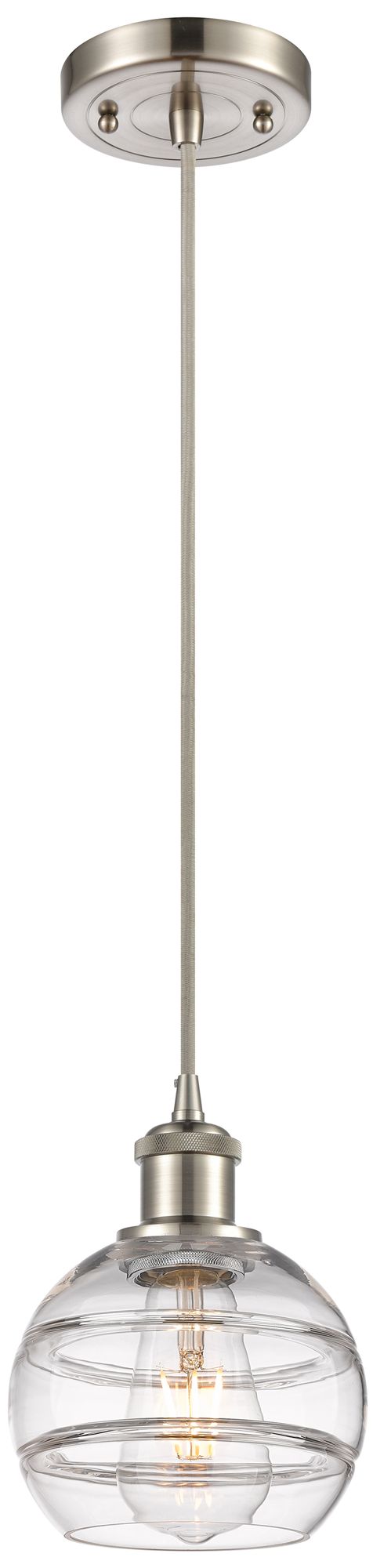 Ballston Rochester 5.88"W Satin Nickel Corded Mini Pendant w/ Clear Sh