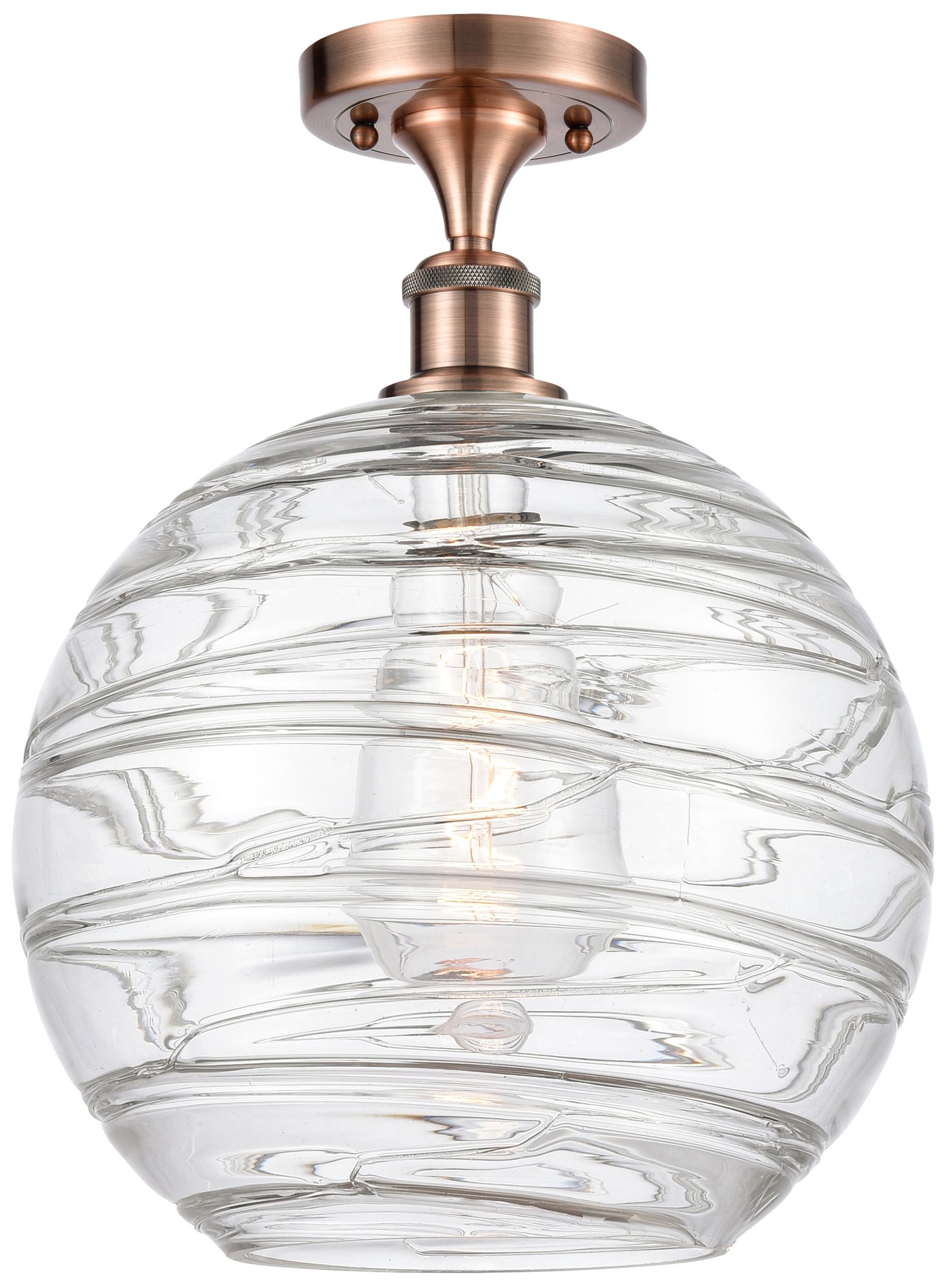 Athens 12" Antique Copper Semi Flush Mount w/ Clear Deco Swirl Shade