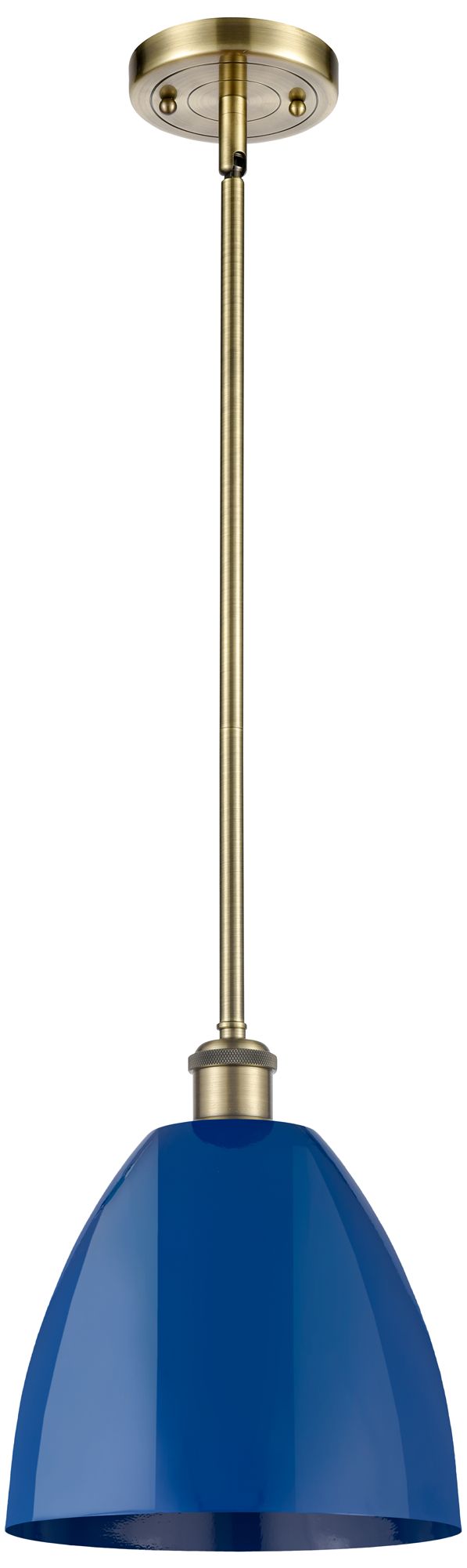 Plymouth Dome 9" Wide Antique Brass Stem Hung Pendant w/ Blue Shade