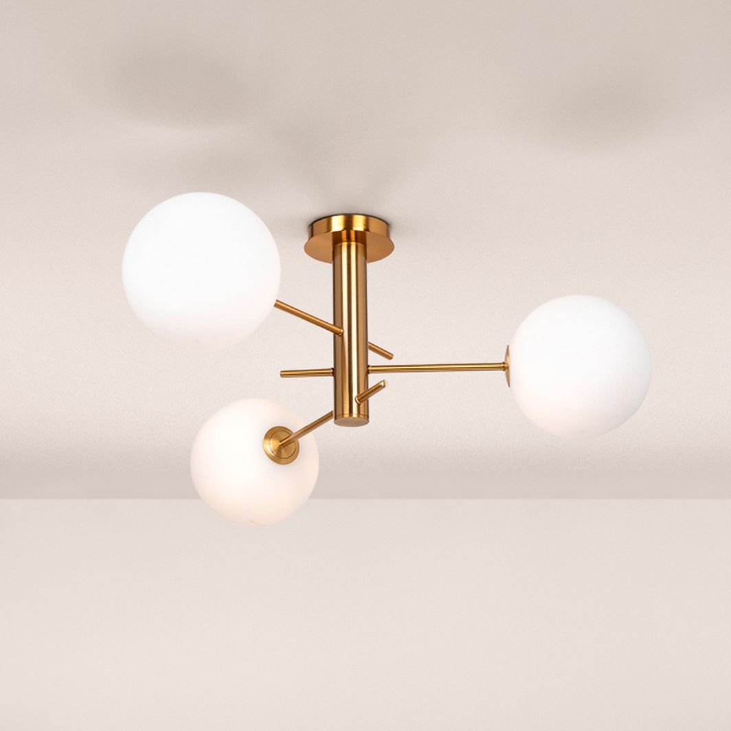 Aurelia 31.5" Wide 3-Light Brass Semi-Flush Mount With White Glass Sha