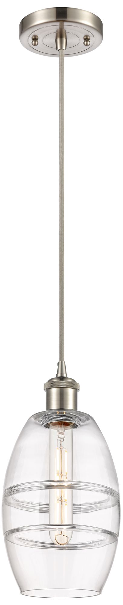 Ballston Vaz 5.88"W Brushed Satin Nickel Corded Mini Pendant w/ Clear