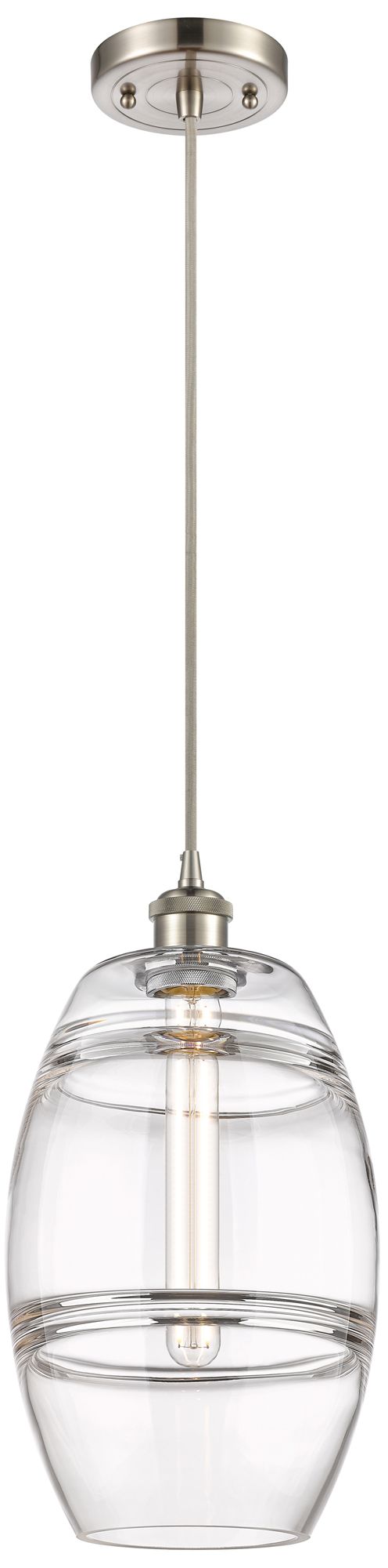 Ballston Vaz 8"W Brushed Satin Nickel Corded Mini Pendant w/ Clear Sha