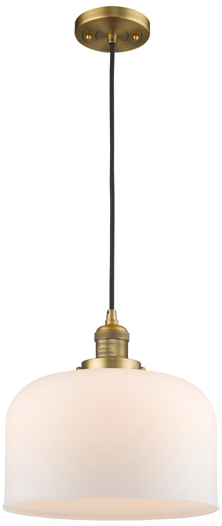 Franklin Bell 12" Brushed Brass Corded Mini Pendant w/ White Shade