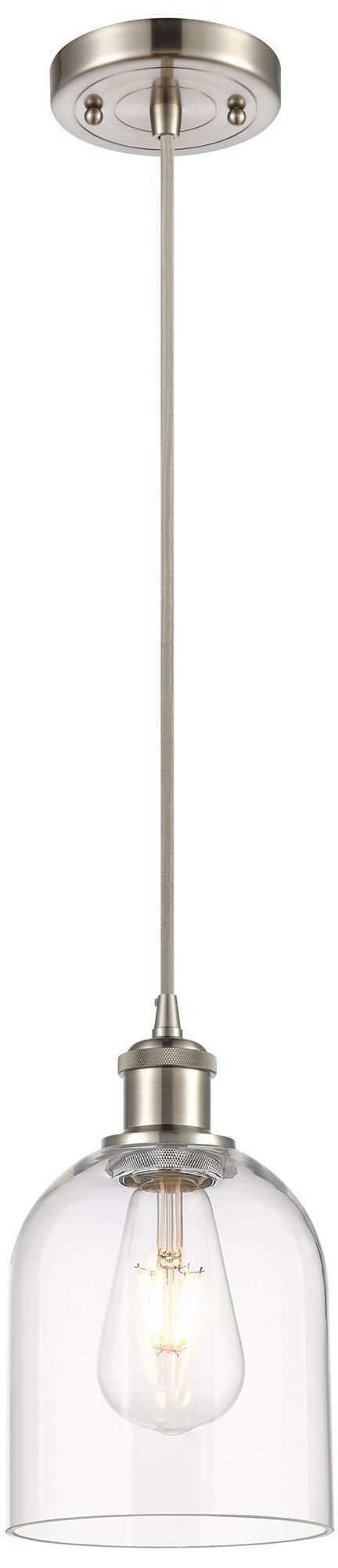 Ballston Bella 5.5"W Satin Nickel Corded Mini Pendant w/ Clear Shade