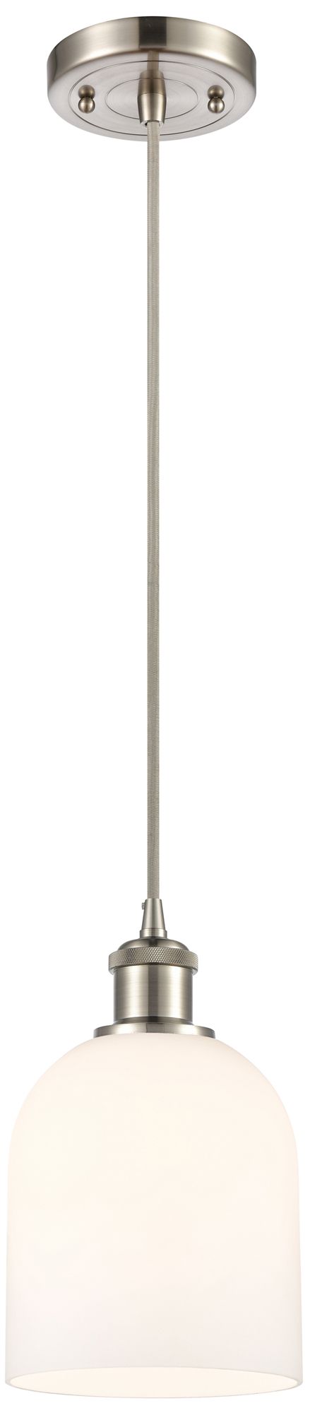 Ballston Bella 5.5"W Satin Nickel Corded Mini Pendant w/ Glossy White